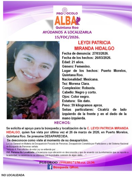 Alerta Nacional de Búsqueda, Localización e Identificación de Personas Desaparecidas y No Localizadas.